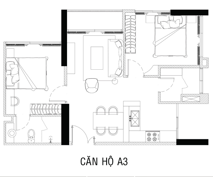 Mặt bằng tổng thể: Căn hộ 2 Phòng Ngủ, DT: