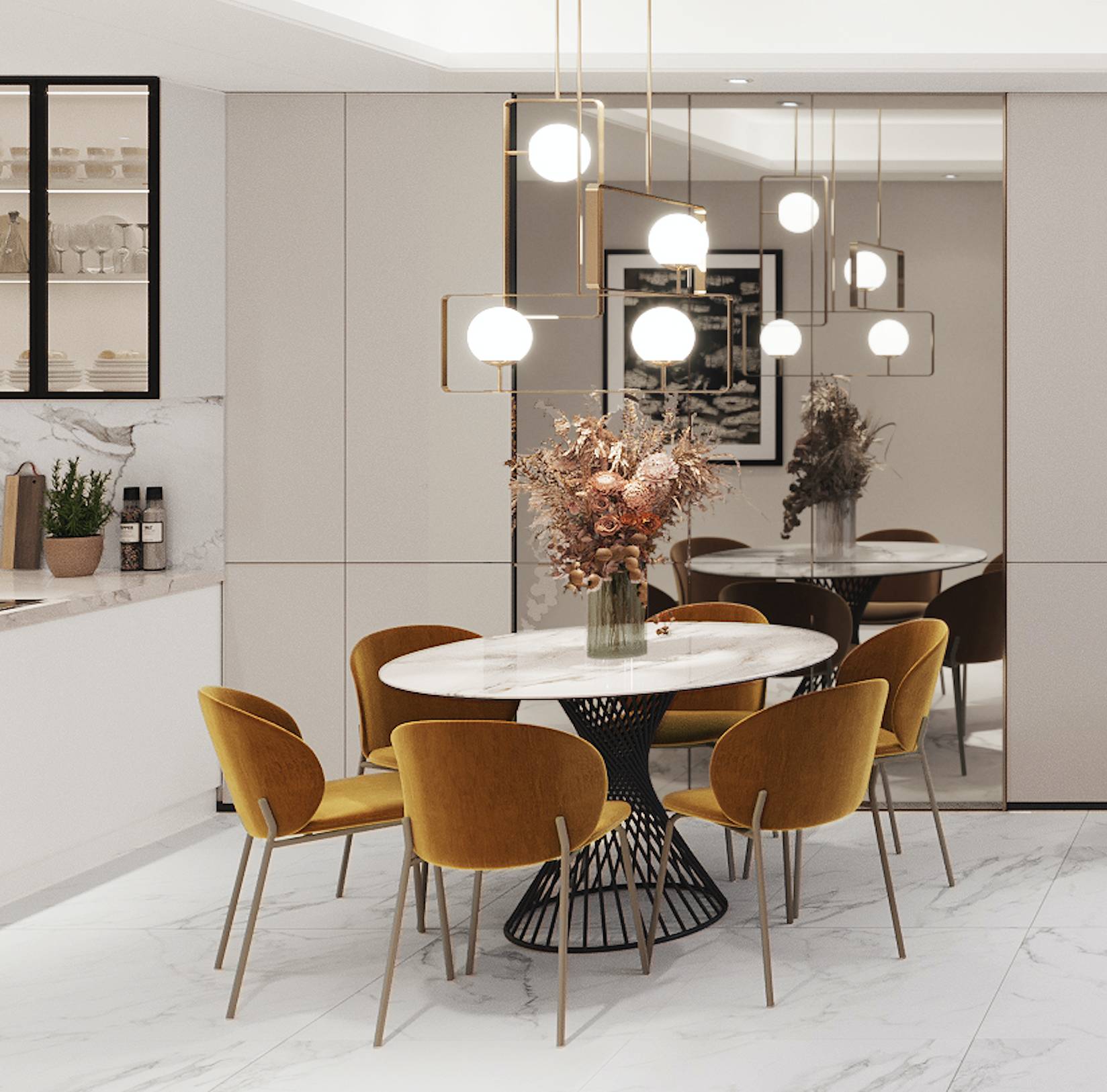 GIẢI PHÁP NỘI THẤT/ Phối cảnh phòng ăn, bếp/ Metropole Thủ Thiêm.