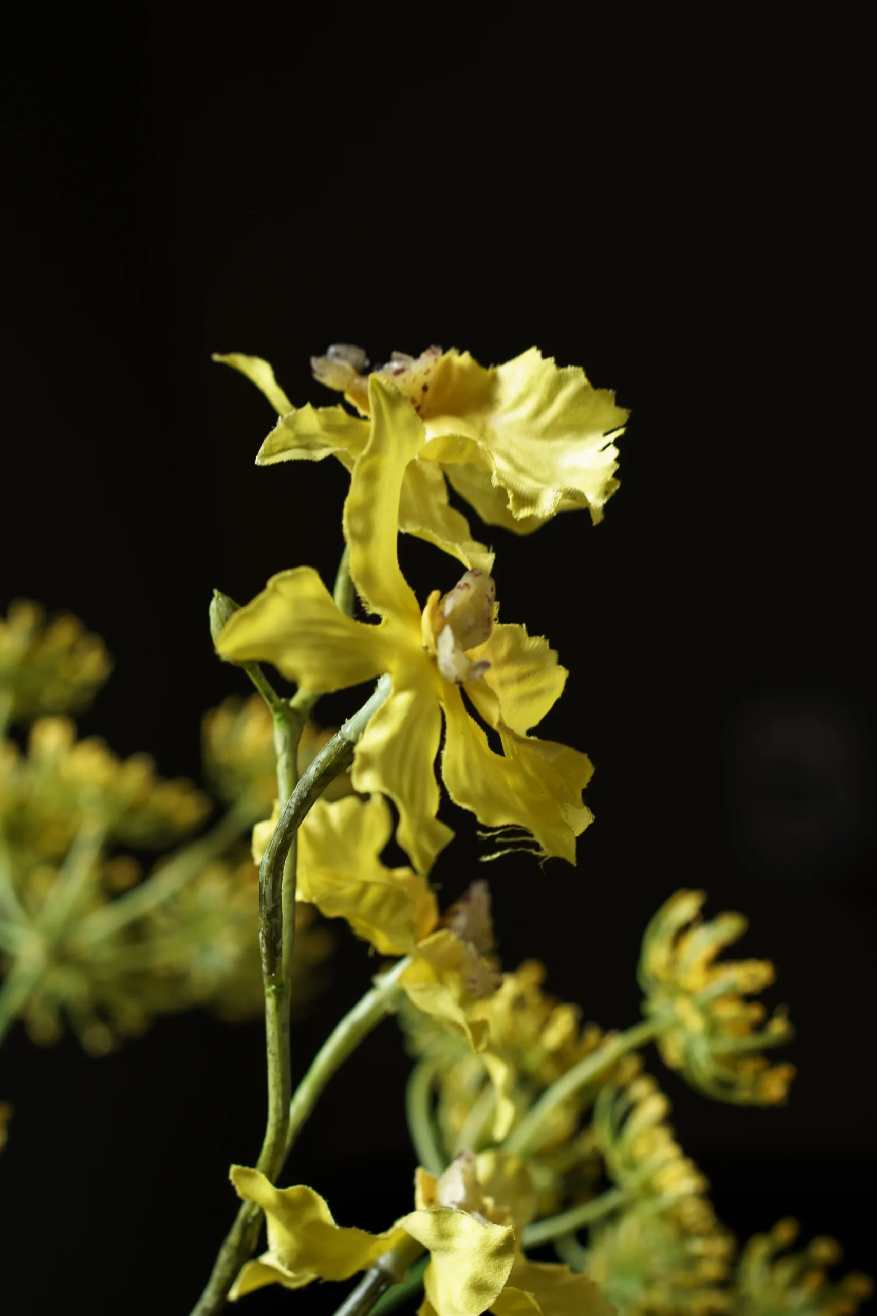 Bình hoa này kết hợp sự tinh tế và sức sống mãnh liệt. Những bông hoa huệ cam rực rỡ nổi bật trên nền đen bí ẩn, tạo nên sự tương phản ấn tượng. Bình hoa này sẽ là điểm nhấn cá tính, phù hợp với nhiều phong cách trang trí.