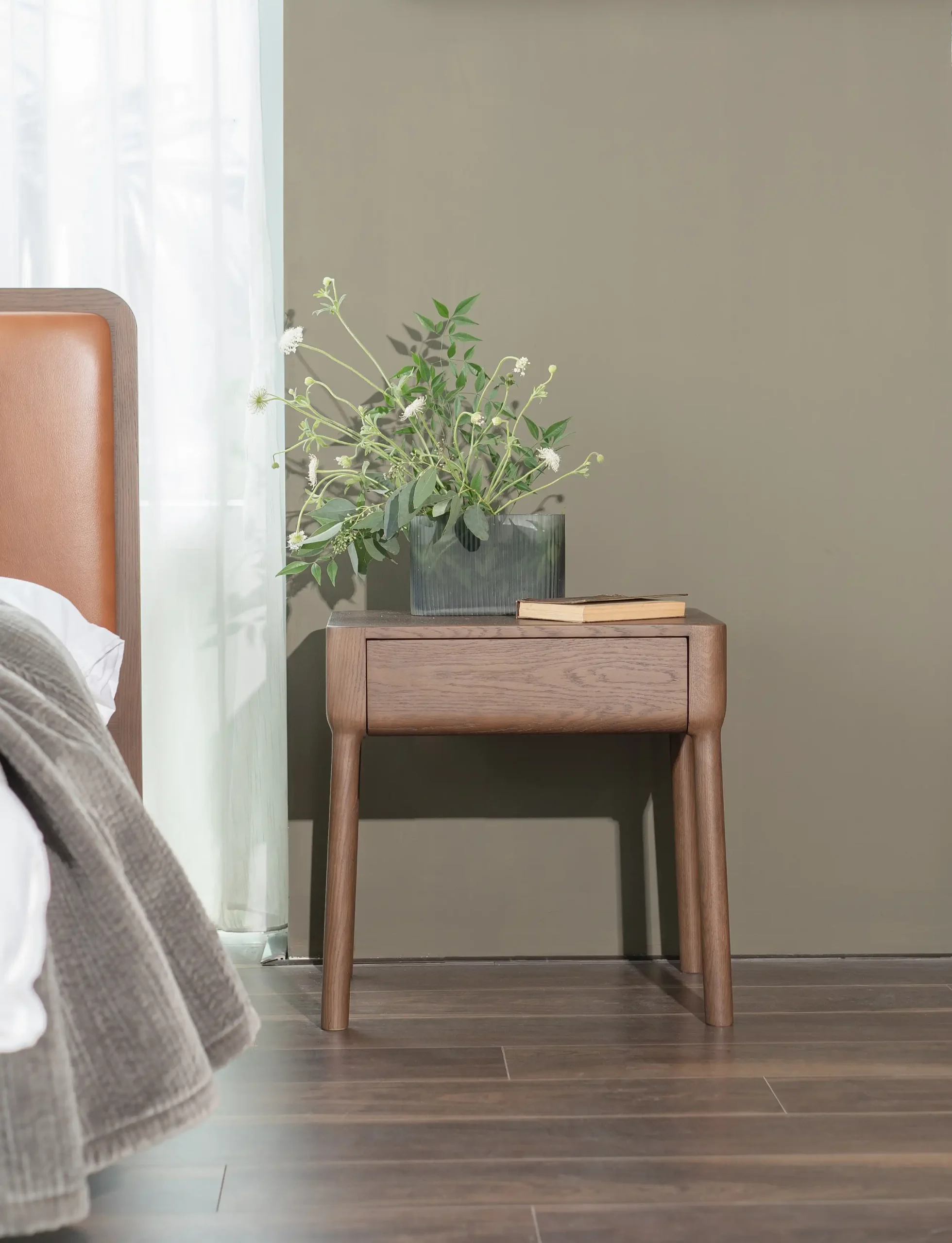 Thiết kế nhỏ gọn nhưng đầy đủ công năng, bàn đầu giường BRIDGE được trang bị một ngăn kéo tiện dụng, là nơi lý tưởng để lưu trữ đèn ngủ, sách hay các đồ dùng cá nhân. Với kiểu dáng thanh lịch, sản phẩm này không chỉ giúp căn phòng thêm gọn gàng mà còn tạo điểm nhấn tinh tế cho không gian.