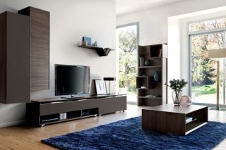 Smoked walnut finish: Frame and fronts in smoked walnut-effect foiled particleboard. Chocolate water-based lacquer fronts. Edges with the same finish, some ABS 1 and 2mm. Bookcase and coffee tables come in smoked walnut effect and chocolate foil. Drawer frames in smoked walnut effect foiled fibreboard, mounted on ball bearing runners.