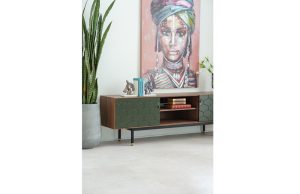 Cabo TV cabinet is made from wood that brings closeness to nature and is covered with MDF veneer walnut, combined with sturdy metal legs. A special highlight is the two olive green doors with Braisillia motifs creating a modern, meticulous in every detail. Cabo TV cabinet is an indispensable item in every family's living room, in addition to being a place to place the TV, it also decorates the space more prominently.
