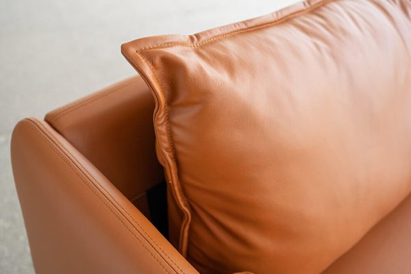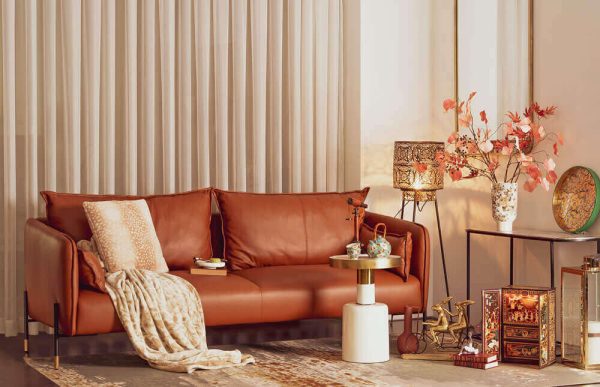 Sofa Combo 3 seats Bali leather 518 trendy brick orange is your wisest choice for the living room space to be more warm and smooth. This is a leather sofa model with a beech wood frame with super elastic mousse, metal legs painted in black and gold, and durable, beautiful, and affordable natural leather upholstery, suitable for spaces that often receive guests and people. much in and out.