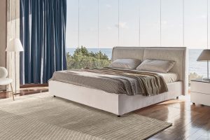 Dolly bed model with a special design of the bed frame can be raised to create a storage space under the bed extremely convenient. High-quality soft leather headboard supports the back for reading.