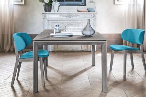 Love is a classic-shaped dining chair with a soft accent chair to create romance. Fabric upholstered chairs and gilded metal legs add nobility to your dining room.