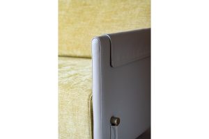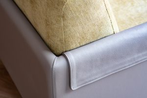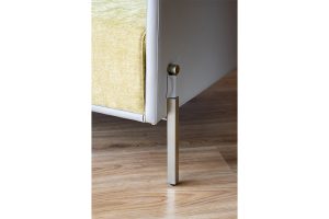 Material Gold metal legs, natural cowhide frame, fabric mattress