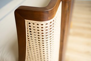 May leather bed is a combination of the main body made of Melaleuca wood, upholstered with leather and accented with rattan material for the headboard. Dark colors make the bedroom space cozy and closer. May beds have 2 sizes 1m6 and 1m8.