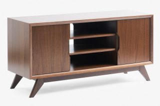 Using the characteristic swirling wood grain of walnut, the Pop TV cabinet and display system are shown on luxurious warm brown tones. With a smart modular design, users can unleash their creativity in their living space. The product is one of the choices for lovers of minimalist beauty.