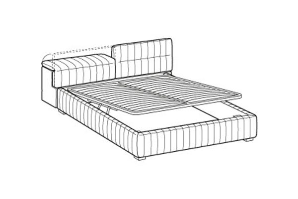 The concept underpinning this product comes from the exclusive luxury vintage train-reconstructed padded seats and features a soft longitudinal grain that accentuates the grandeur of the massive design. When the headboard is opened, a space can be used for extremely convenient storage. The product is available in three versions of wooden and metal legs with the option of style and height above the ground to best suit the customer. Portland beds are available with either a fixed base or a storage unit. Can be upholstered with fabric or leather.