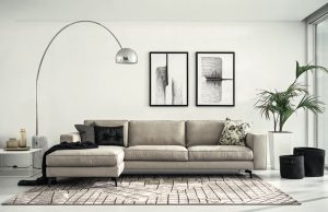 Square right corner sofa with large square design, double stitching border running along the edge of the backrest and seat cushion is the highlight, it is shown in both leather and fabric versions. The seat cushion is designed with dense multi-dimensional elastic PU and Polyurethane (synthetic plastic) for a comfortable embrace with long-lasting use. You can choose to change the upholstery fabric or design the legs according to your preferences, and the space of your family living room.