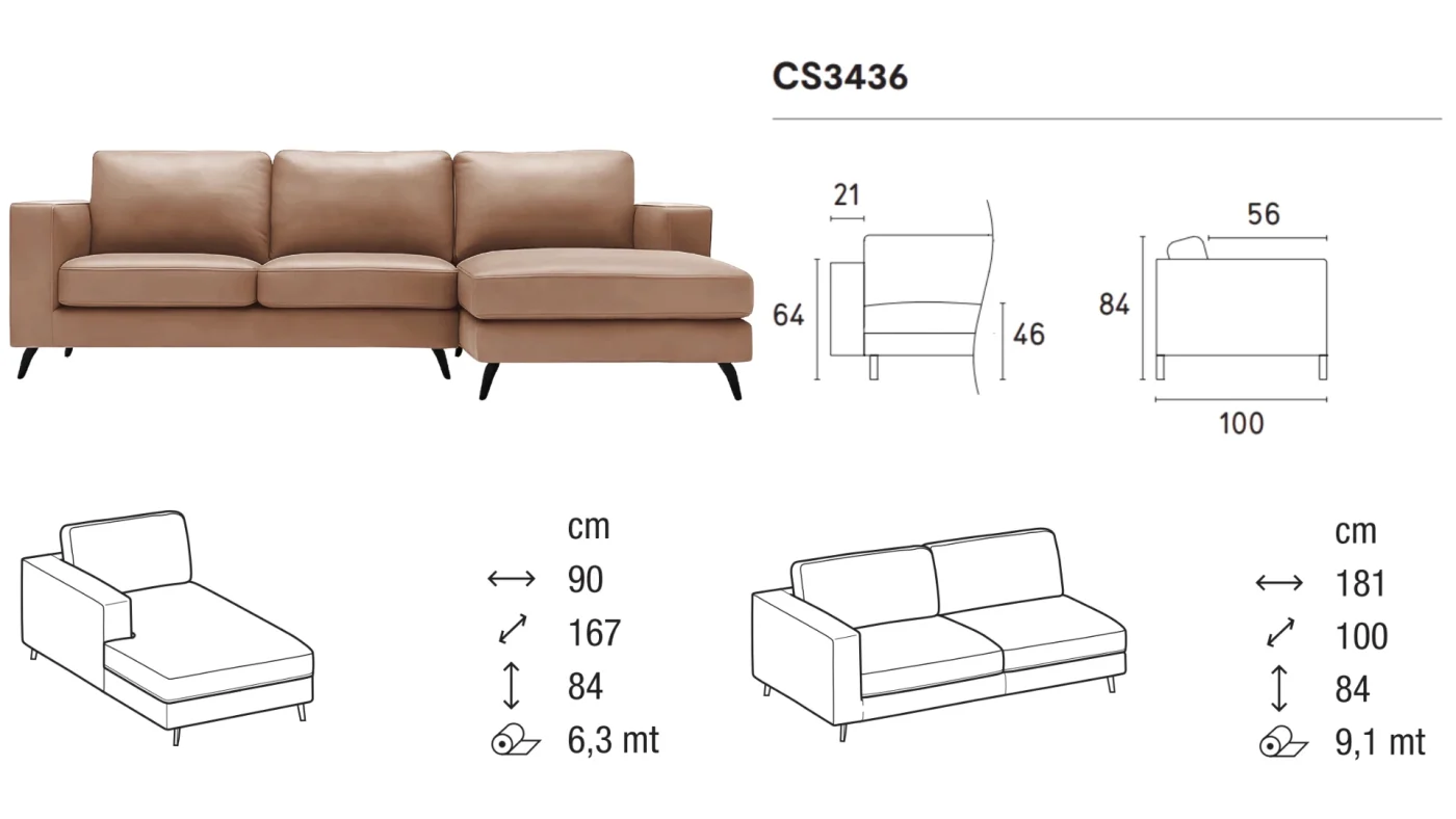 Square left corner sofa with large square design, double stitching border running along the edge of the backrest and seat cushion is the highlight, it is shown in both leather and fabric versions. The seat cushion is designed with dense multi-dimensional elastic PU and Polyurethane (synthetic plastic) for a comfortable embrace with long-lasting use. You can choose to change the upholstery fabric or design the legs according to your preferences, and the space of your family living room.