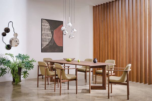 Bàn ăn 8 chỗ Orientale Walnut là sự kết hợp giữa vẻ đẹp hiện đại và cảm hứng phương Đông với thiết kế thanh lịch, tối giản, tôn vinh vẻ đẹp tự nhiên của gỗ walnut. Với mặt bàn rộng rãi và sắc nâu ấm, sản phẩm không chỉ là trung tâm sum họp gia đình mà còn là điểm nhấn sang trọng cho không gian sống, thể hiện giá trị bền vững và cảm xúc gắn kết qua triết lý thiết kế nhân văn.