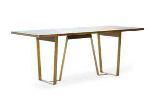 Chân inox màu gold -cạnh bàn ốp inox màu gold -Mặt bàn Gỗ+mdf veneer Oak