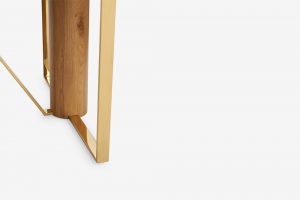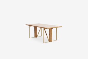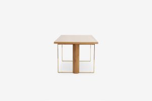 Bàn ăn gỗ sồi Oak với thiết kế thanh lịch mang đến một không gian phòng ăn sang trọng. Chân trụ tròn đỡ mặt bàn bằng gỗ sồi ghép kết hợp thép mạ màu gold tạo thành một khối hài hòa vững chắc. Mặt bàn bằng gỗ veneer sồi vẫn giữ màu sáng, vân gỗ được chọn lọc kỹ đều và tinh tế.