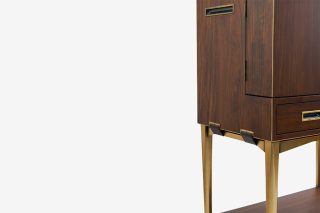 Thiết kế độc đáo của Tủ rượu Maxine giống như một món quà trong phòng ăn, nơi cất trữ những đồ dùng như ly, cốc hay bình rượu,… Các cánh tủ, hộc kéo đều được hoàn thiện và sử dụng phụ kiện cao cấp nên mọi thao tác đều vô cùng nhẹ nhàng. Màu sắc ấm cúng, sang trọng với tông màu gỗ nâu trầm và phần chân kim loại ánh kim.