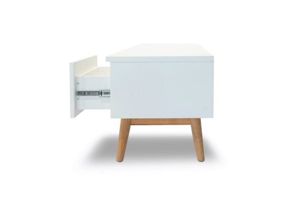 Tủ tivi Roma hiện đại với tông màu trắng cùng chân gỗ tần bì tự nhiên, được gia công tỉ mỉ từng góc cạnh. Bạn nên kết hợp cùng bộ sưu tập Roma để căn phòng được hoàn hảo hơn.