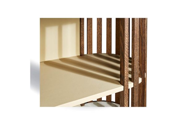 Vật liệu Gỗ kết hợp MDF veneer oak - Cánh tủ bọc da công nhiệp - Khung chân, tay nắm inox mạ pvd