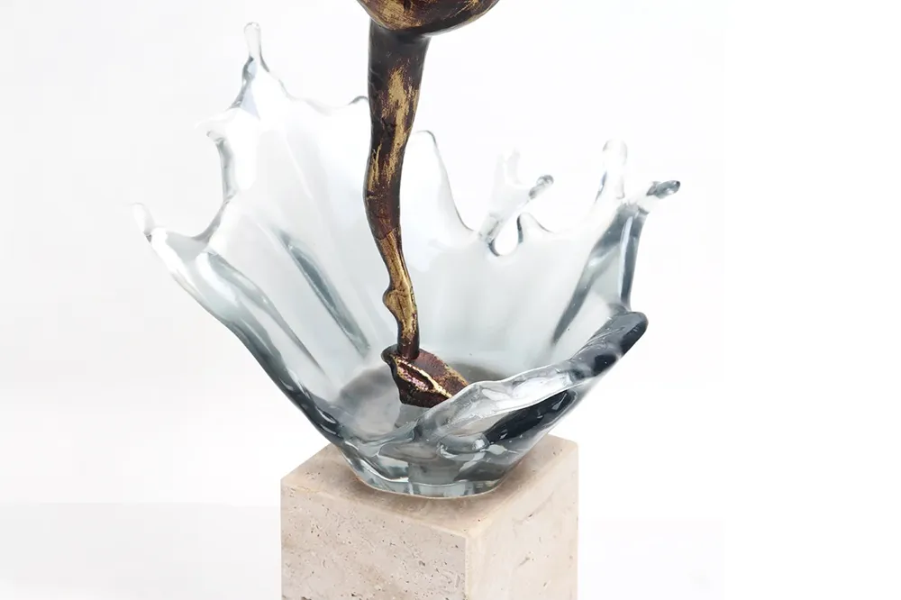 Tượng Ballet Of The Tides khắc họa dáng vũ công vươn người phủ tông đồng nâu ấm trên bệ resin trong mô phỏng gợn nước, tất cả đặt trên đế đá marble. Sự đối lập giữa chuyển động mềm mại và khối đá vững chãi tạo nên cảm giác tìm thấy bình yên giữa nhịp sống chuyển động. Phù hợp đặt trong không gian Contemporary, Modern Classic.